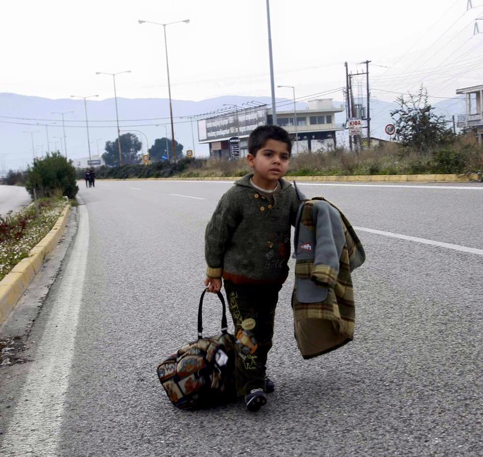 Στη φωτογραφία που κυκλοφορεί στα μέσα κοινωνικής δικτύωσης και έχει συλλέξει εκατοντάδες like, συνοδευόμενα από συγκινητικά μηνύματα, απεικονίζεται ένας ανήλικος πρόσφυγας να περπατάει μόνος του στο οδόστρωμα, κρατώντας στο ένα του χέρι ένα παλτό και στο άλλο να σέρνει μία τσάντα.
