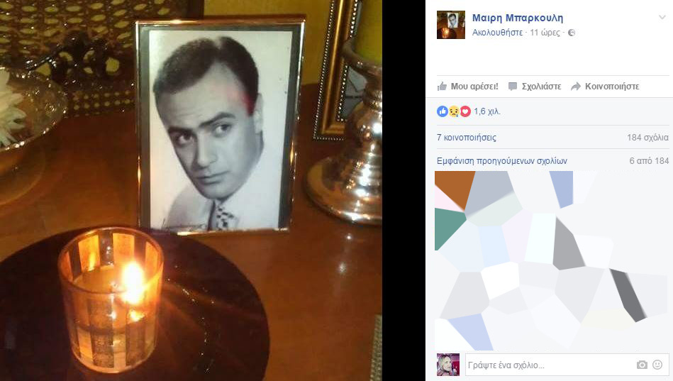 Η Μαίρη Μπάρκουλη άλλαξε τη φωτογραφία στο προφίλ της στο facebook με μία του Ανδρέα που δίπλα της έχει ένα καντήλι.