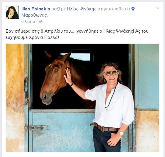 “Σαν σήμερα στις 8 Απριλίου του…. γεννήθηκε ο Ηλίας Ψινάκης. Ας του ευχηθούμε Χρόνια Πολλά” αναφέρεται στο δημόσιο προφίλ του στο facebook.