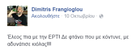 Παράλληλα, στην ανάρτηση έγραψε: «Έλεος πια με την ΕΡΤ. Δεν φτάνει που με κόντυνε, με αδυνάτισε κιόλας».