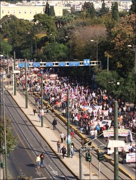Δείτε τις εντυπωσιακές εικόνες από την πορεία της ΓΣΕΕ-ΑΔΕΔΥ στο κέντρο της Αθήνας.