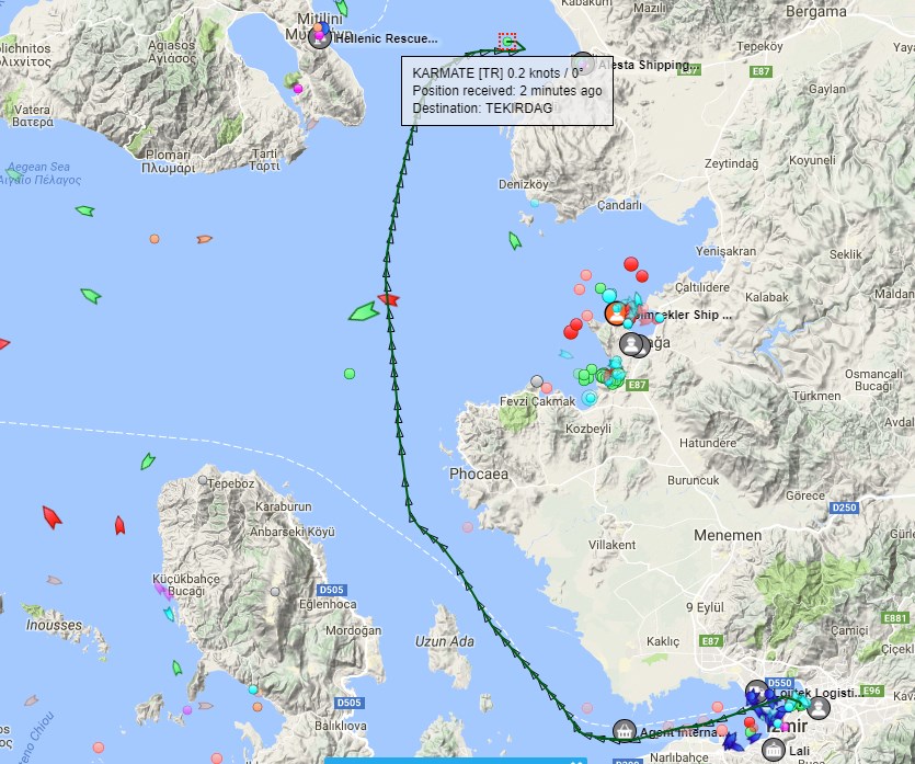 Την πορεία του τουρκικού εμπορικού πλοίου, το οποίο ακούμπησε από αριστερά την κανονιοφόρο ΑΡΜΑΤΩΛΟΣ του Στόλου μας, ενώ βρισκόταν σε νατοϊκή αποστολή, όπως έχει καταγραφεί με την τελευταία θέση του, δημοσιεύει το militaire.gr.