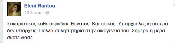 «Σοκαριστικός κάθε αιφνίδιος θάνατος. Και άδικος. Υπάρχω λες κι ύστερα δεν υπάρχεις. Πολλά συλλυπητήρια στην οικογένεια του. Σήμερα η μέρα σκοτείνιασε».