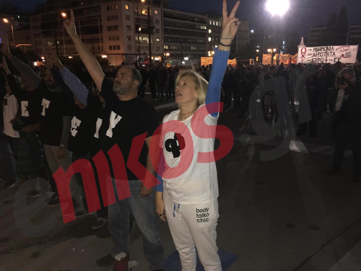 Η Ραχήλ Μακρή, βρίσκεται μαζί με διαδηλωτές έξω από το κτίριο της Βουλής, όπου διαμαρτύρονται κατά του πολυνομοσχεδίου για τα νέα μέτρα, το οποίο ψηφίζεται απόψε.Η πρώην βουλευτής, μαζί με μία ομάδα ατόμων, φορούν μπλούζες οι οποίες στο πίσω μέρος τους γράφουν «φρουρά, φρουρά!», σύνθημα εμπνευσμένο από όσα διαδραματίσθηκαν την περασμένη Δευτέρα στην Ολομέλεια της Βουλής, όταν ο Μάκης Μπαλαούρας καλούσε απεγνωσμένα τη φρουρά της Βουλής να επέμβει μετά την επίθεση του Ηλία Κασιδιάρη στον Νίκο Δένδια.