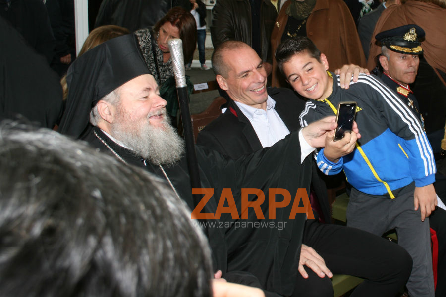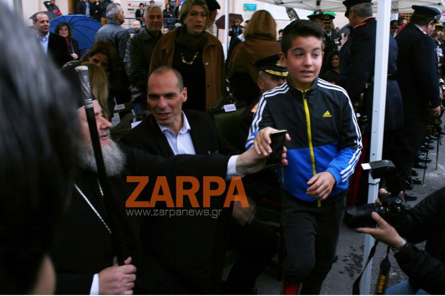 Ο Γιάνης Βαρουφάκης, συνοδευόμενος από τη σύζυγό του Δανάη Στράτου έφθασε στα Χανιά, για να εκπροσωπήσει την κυβέρνηση. Ο κ. Βαρουφάκης που βρέθηκε στην πόλη, για να συμμετάσχει στον εορτασμό της εθνικής επετείου της 25ης Μαρτίου και να παρακολουθήσει την παρέλαση, έγινε αντικείμενο λατρείας από μικρούς και μεγάλους. Δεν παρέλειψε, μάλιστα, να βγάλει και μία selfie φωτογραφία.