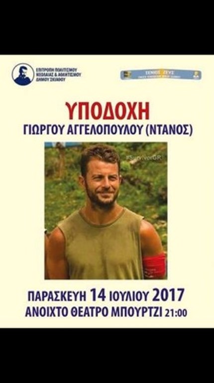 Ο μεγάλος νικητής του Survivor, Γιώργος Αγγελόπουλος, δεν έκανε υπερήφανους μόνο τους φίλους και την οικογένειά του με τη συμμετοχή και τη νίκη του στο δημοφιλές ριάλιτι επιβίωσης, αλλά και την ιδιαίτερη πατρίδα του, τη Σκιάθο.Έτσι, η επιτροπή Πολιτισμού, Νεολαίας και Αθλητισμού του Δήμου Σκιάθου ετοιμάζει την Παρασκευή 14 Ιουλίου, μεγάλη υποδοχή στον Ντάνο σε ανοιχτό θέατρο του νησιού.Μάλιστα, έχουν ήδη κυκλοφορήσει και οι σχετικές αφίσες, ώστε να ενημερωθεί το κοινό για τη μεγάλη φιέστα και να παρευρεθεί στη βραδιά, όπου θα έχει την ευκαιρία να δει από κοντά τον μεγάλο νικητή του Survivor.