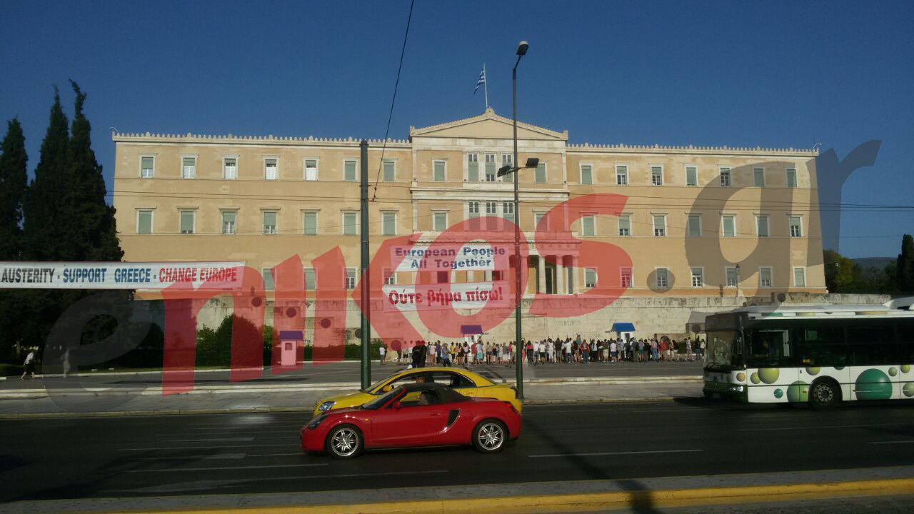 Αρχίζει σε λίγη ώρα η συγκέντρωση στην πλατεία Συντάγματος ως ένδειξη στήριξης στην κυβέρνηση και ενάντια στη λιτότητα. Ο κόσμος, όπως βλέπετε, έχει ήδη αρχίζει να καταφθάνει.