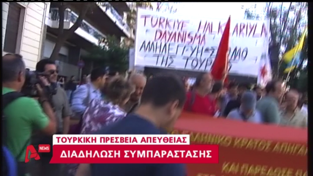 Συγκέντρωση συμπαράστασης στους διαδηλωτές της Τουρκίας πραγματοποιείται αυτή την ώρα έξω από την τουρκική πρεσβεία στην Αθήνα.