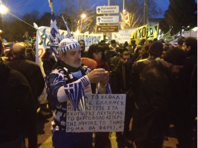 Με συνθήματα και πανό “ψηλά το κεφάλι” και “λευτεριά στην Ελλάδα” η Θεσσαλονίκη στέλνει βροντερό μήνυμα προς κάθε κατεύθυνση και στηρίζουν τις προσπάθειες της νεοσύστατης κυβέρνησης να έρθει σε μια συμφωνία με τους ευρωπαίους εταίρους.