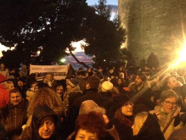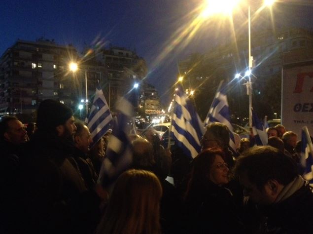 Περισσότερα από 2.000 άτομα βρίσκονται εδώ και λίγη ώρα συγκεντρωμένοι μπροστά απο τον Λευκό Πύργο και δείχνουν εμπράκτως τη στήριξή τους, ενώνοντας τις φωνές τους με τις υπόλοιπες πόλεις της Ελλάδας, αλλά και αρκετές ευρωπαϊκές πρωτεύουσες που οργάνωσαν συλλαλητήρια για να σταθούν στο πλευρό των Ελλήνων.