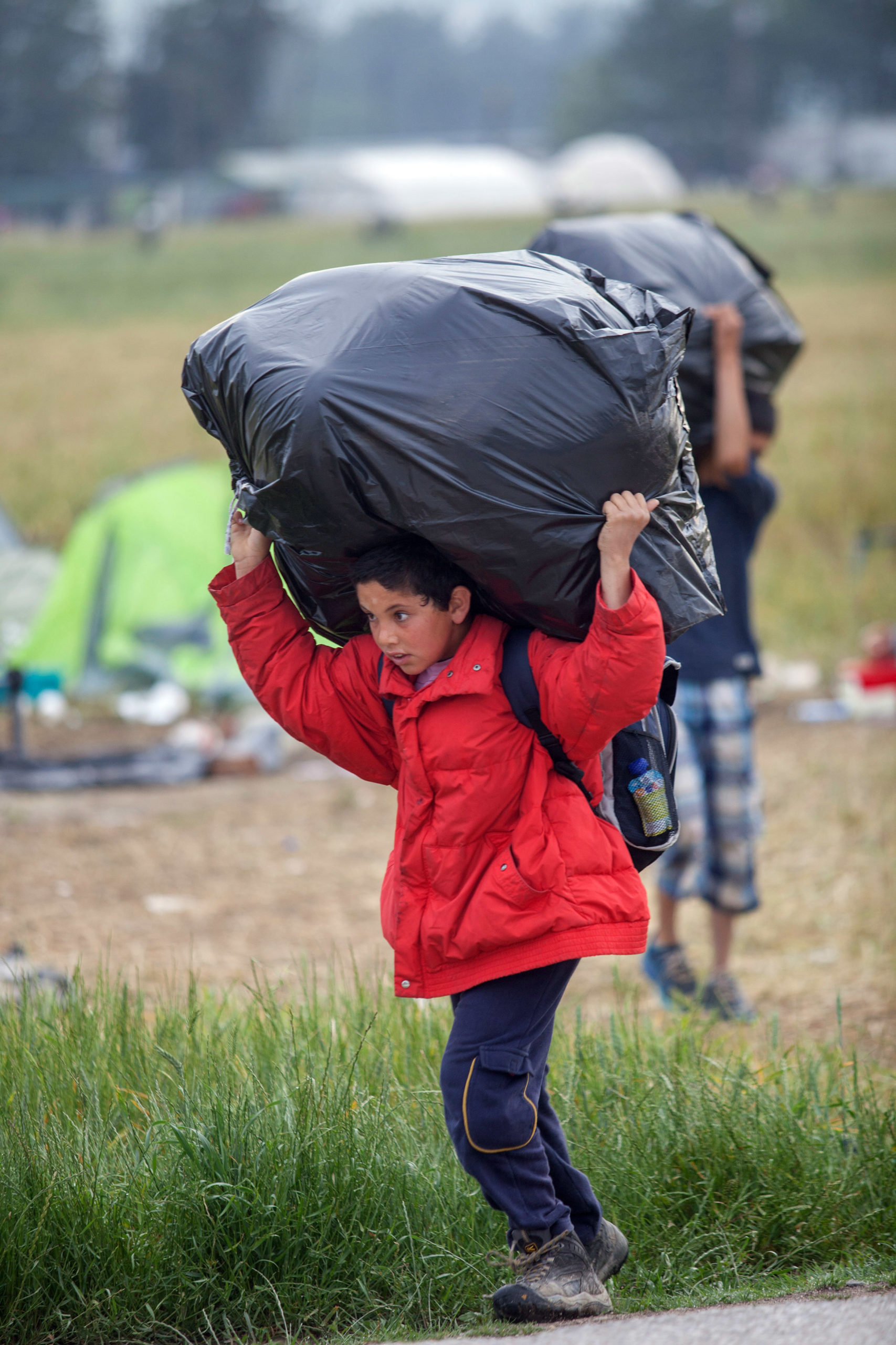 Συγκλονίζει η εικόνα που αποτυπώνει ο φωτογραφικός φακός, με τον μικρό πρόσφυγα ο οποίος αναχωρεί από τον καταυλισμό της Ειδομένης φορτωμένος με ένα τεράστιο δέμα στους ώμους του, το οποίο περιέχει όλα του τα υπάρχοντα.