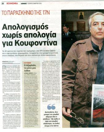 Η συγνώμη του Κουφοντίνα για τον Αξαρλιάν στο βιβλίο του