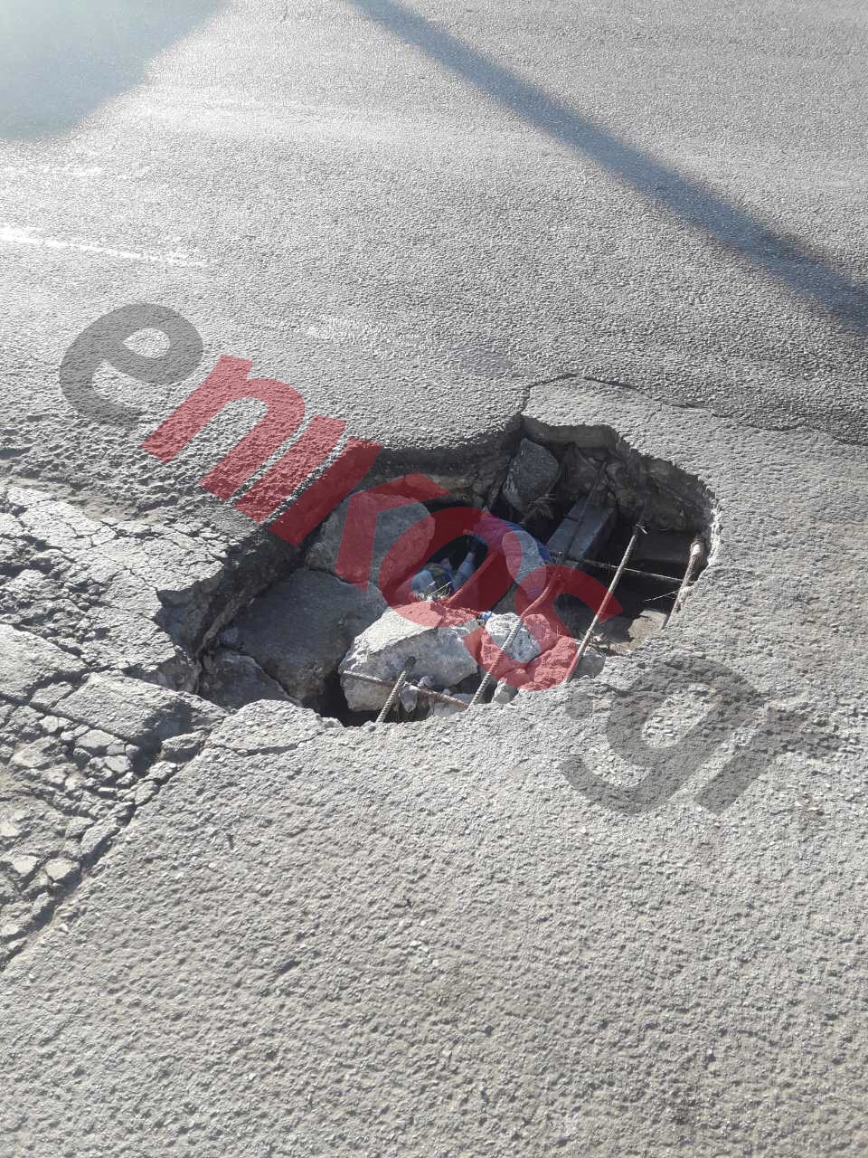 Η τεράστια λακκούβα σε δρόμο του Περάματος- ΦΩΤΟ αναγνώστη