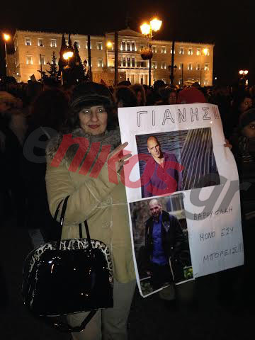 Ανάμεσα στους διαδηλωτές που βρίσκονται στη συγκέντρωση συμπαράτασης στο Σύνταγμα είναι και μία “θαυμάστρια” του υπουργού Οικονομικών, Γιάνη Βαρουφάκη.
