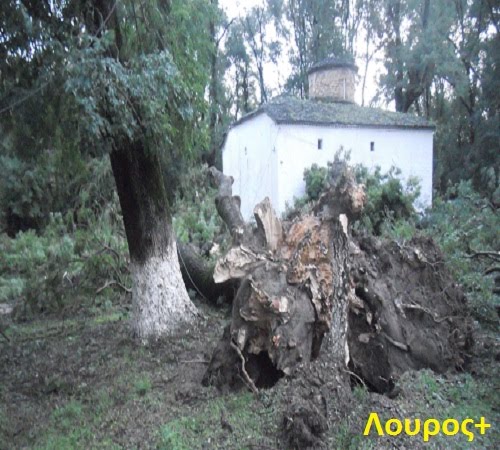 Κατά τα χθεσινά ακραία καιρικά φαινόμενα , δέντρα που ήταν γύρω-γύρω από την εκκλησία του Αγίου Βαρνάβα στον Λούρο της Άρτας, ξεριζώθηκαν από τον αέρα και βρέθηκαν πεσμένα ακριβώς μπροστά από τον Ιερό Ναό.