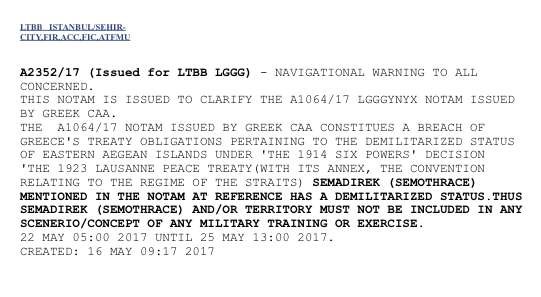 Σύμφωνα με το militaire.gr, δεν τέθηκε κανένα ερώτημα, ενώ η ιστοσελίδα παραθέτει το κείμενο της ελληνικής ΝΟΤΑΜ και της τουρκικής ΝΟΤΑΜ.