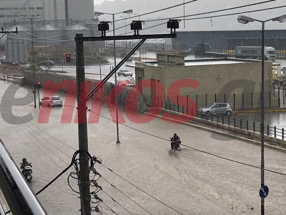 Αυτοκίνητα “κολυμπάνε” στα λιμνάζοντα νερά επί της Λεωφόρου Ειρήνης στο Πέραμα. Επίσης, η περιοχή κοντά στην ιχθυόσκαλα στο Κερατσίνι παρουσιάζει την ίδια εικόνα.