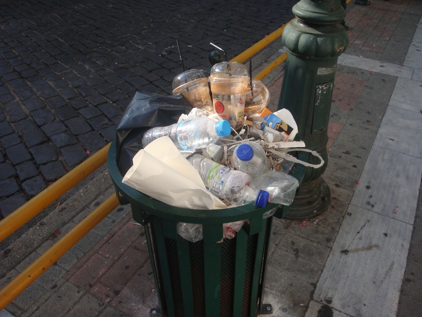 Το πρωί της Τετάρτης οι κάδοι που βρίσκονται περιμετρικά της κεντρικής πλατείας της πόλης θύμιζαν χωματερή, ενώ ακόμη και τα μικρά καλάθια σκουπιδιών που βρίσκονται διασκορπισμένα σε μικρές αποστάσεις μέσα στους δρόμους της πόλης είχαν «πλημμυρίσει» από τα σκουπίδια.