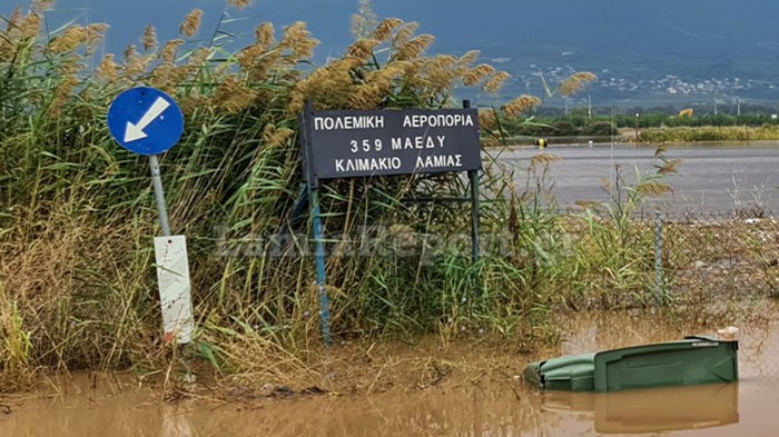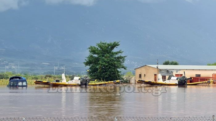 Οι εικόνες μέσα από το αεροδρόμιο είναι αποκαλυπτικές της θεομηνίας καθώς τα PZL «χάθηκαν» από τον τεράστιο όγκο νερού που έχει πλημμυρίσει γενικά τον κάμπο του Σπερχειού, η στάθμη του οποίου ανέβαινε απειλητικά όλο το βράδυ ανεξάρτητα από το γεγονός ότι είχε σταματήσει η νεροποντή.