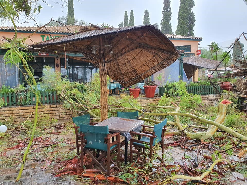 Δεν άφησε τίποτα όρθιο ο κυκλώνας “Ιανός” στο πέρασμά του από την Σάμη της Κεφαλονιάς. Ισχυροί άνεμοι και βροχές προκάλεσαν ζημιές στην περιοχή Καραβόμυλο της Σάμης. Όπως φαίνεται στις φωτογραφίες από το inkefalonia.gr, δέντρα έχουν ξεριζωθεί, ομπρέλες και τραπεζοκαθίσματα έχουν παρασυρθεί και όλα αυτά ενώ η κακοκαιρία θα συνεχίσει να σφυροκοπά το νησί και τις επόμενες ώρες, σύμφωνα με τις προβλέψεις των μετεωρολόγων.