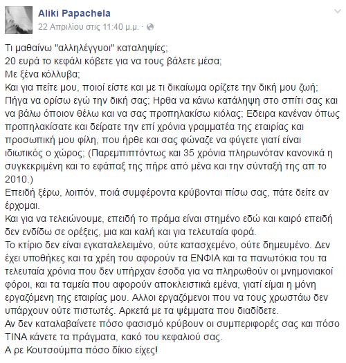 Ακολούθησε και νέα ανάρτηση στο Facebook από την πρωτοβουλία: