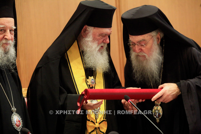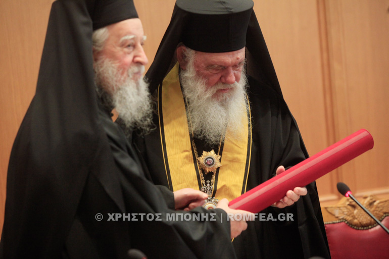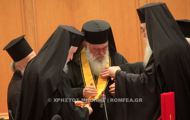 Η τελετή της παρασημοφόρησης τελέστηκε στην αίθουσα συνεδριάσεων της Ιεράρχίας της Εκκλησίας της Ελλάδος.