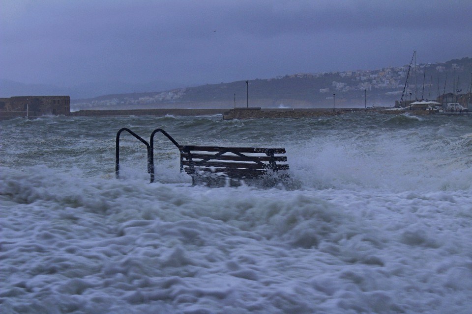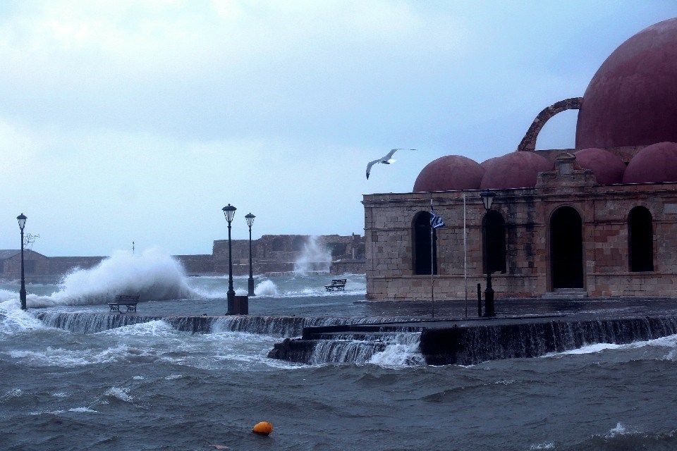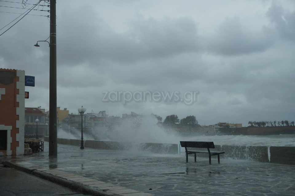 Η κακοκαιρία “Ηφαιστίων” έπληξε και τα Χανιά με τα κύματα να μπαίνουν βαθιά μέσα στο Ενετικό Λιμάνι μέχρι και τα καταστήματα, κάνοντας απροσπέλαστο το παραλιακό μέτωπο.