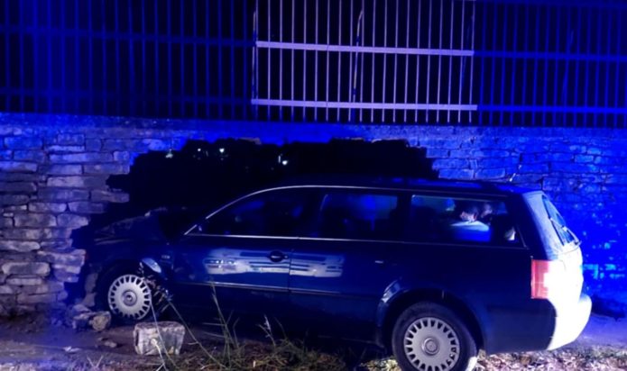 Κατά την καταδίωξη, το αυτοκίνητο ξέφυγε της πορείας του και κατέληξε με σφοδρότητα στον τοίχο του δημοτικού σταδίου της πόλης, γκρεμίζοντας τμήμα της λιθοδομής.