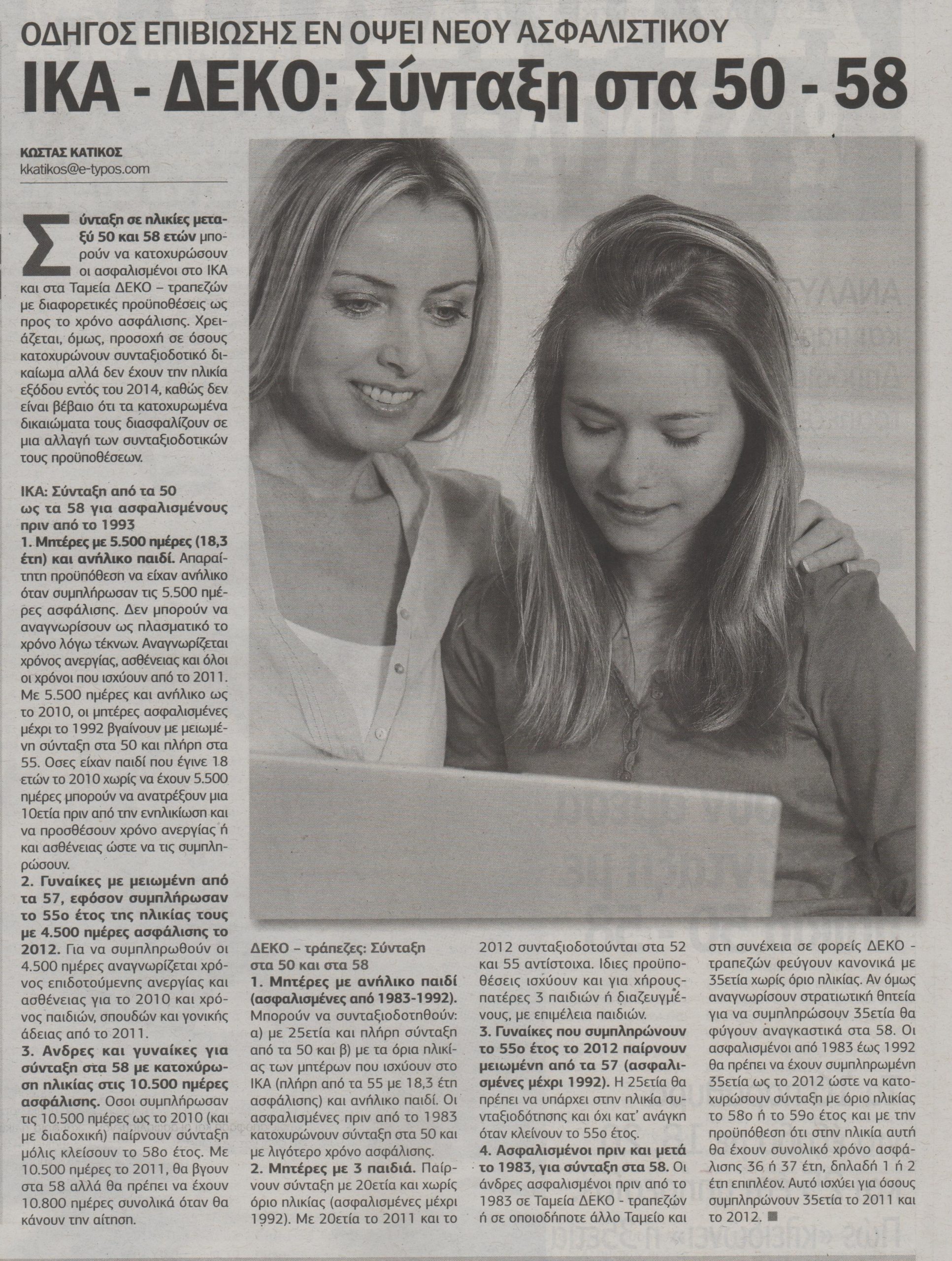 ΙΚΑ-ΔΕΚΟ: Συντάξεις στα 50-58