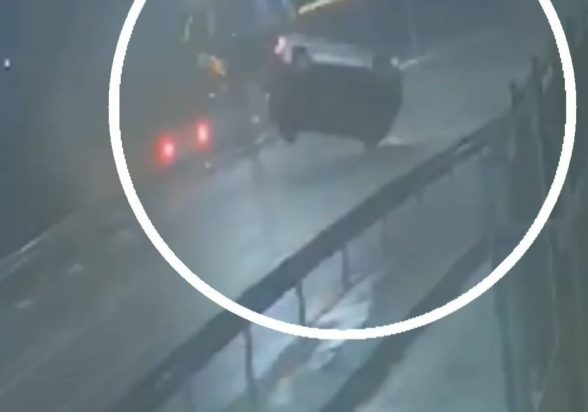 Στο βίντεο που εξασφάλισε η ΕΡΤ αποτυπώνεται η στιγμή που ο ανεμοστρόβιλος ανατρέπει το αυτοκίνητο, το οποίο καταλήγει αναποδογυρισμένο επάνω στο δρόμο.
