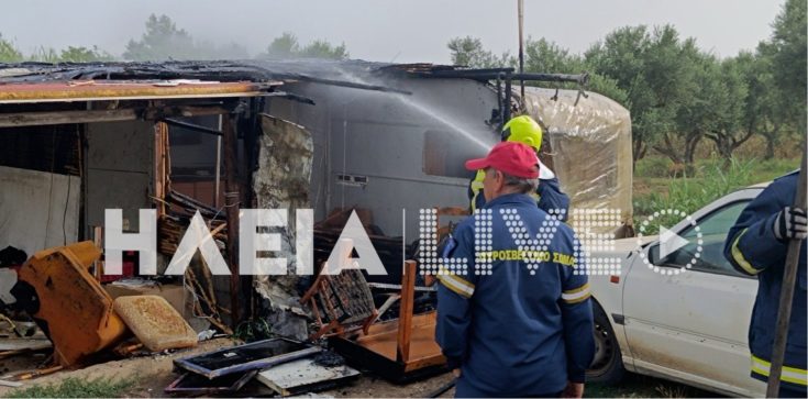 Φωτιά ξέσπασε σε λυόμενη κατοικία στην Μυρτιά Πύργου Ηλείας, λίγα λεπτά πριν από την κηδεία της 11χρονης Βασιλικής, την οποία δολοφόνησε ο θείος της.