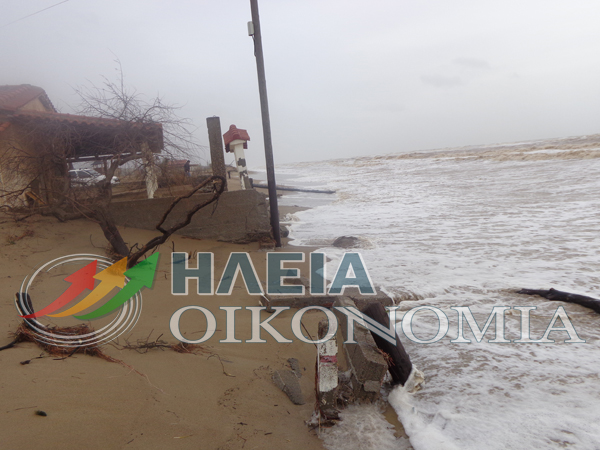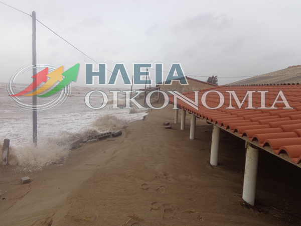 Η μεγάλη θαλασσοταραχή και οι δυνατοί άνεμοι των τελευταίων δύο ημερών είχαν σαν αποτέλεσμα η θάλασσα σε πολλές περιοχές της Ηλείας να έχει «βγει» δεκάδες μέτρα προς την ξηρά και σε κάποιες περιοχές να γκρεμίζει, να παρασέρνει παραλιακά σπίτια και σε άλλες να βρίσκεται σε ελάχιστη απόσταση από τις ιδιοκτησίες.