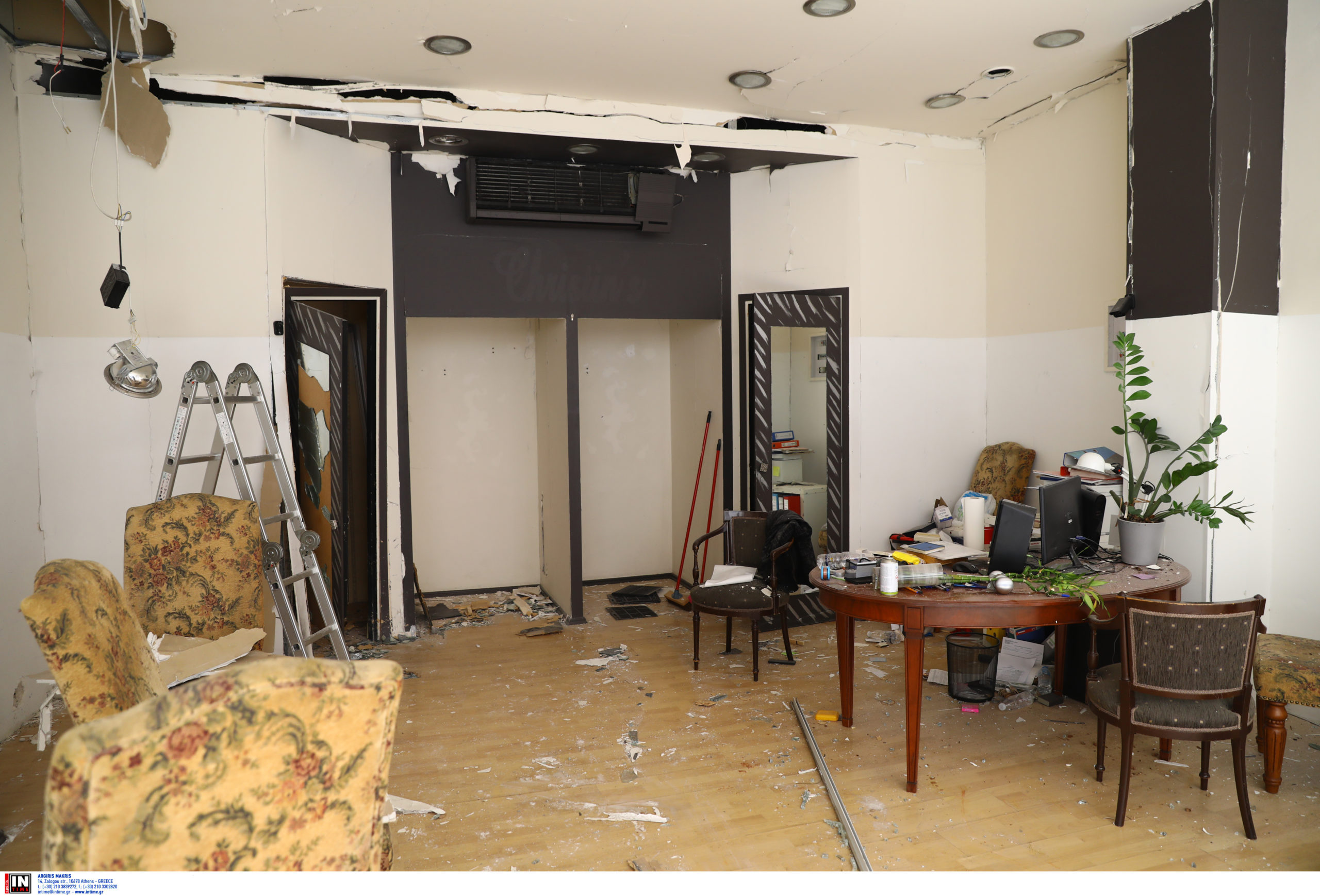 Από την έκρηξη καταστράφηκε ολοσχερώς η τζαμαρία του καταστήματος, ενώ υπέστη ζημιές και το εσωτερικό του μαγαζιού. Μάλιστα, άνοιξε και μία τρύπα, διαμέτρου 20 εκατοστών.