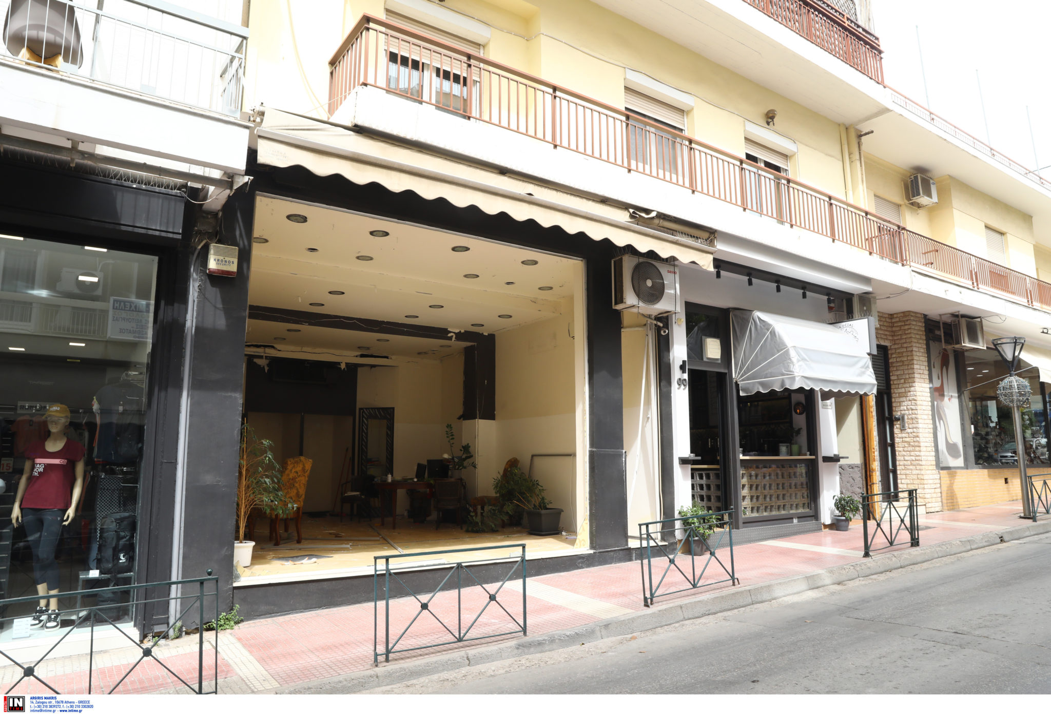 Από την έκρηξη καταστράφηκε ολοσχερώς η τζαμαρία του καταστήματος, ενώ υπέστη ζημιές και το εσωτερικό του μαγαζιού. Μάλιστα, άνοιξε και μία τρύπα, διαμέτρου 20 εκατοστών.