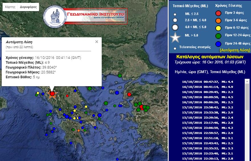 Ισχυρός μετασεισμός 4,9 ρίχτερ σημειώθηκε πριν απο λίγο στην περιοχή των Ιωαννίνων. Το επίκεντρό του βρίσκεται κοντά στου κύριου σεισμού των 5,3 ρίχτερ και έχει επίσης εστιακό βάθος 5 χλμ.
