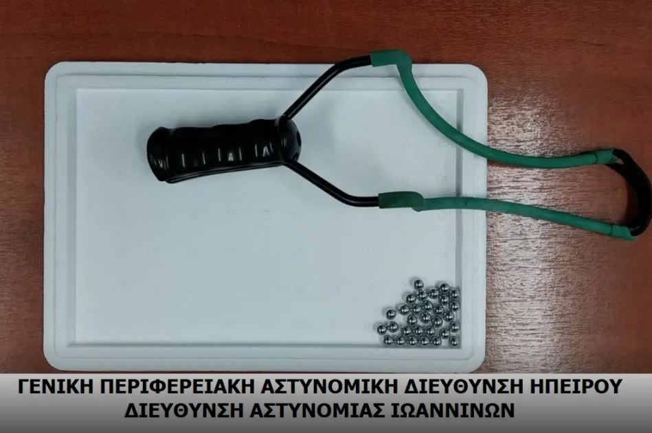 Στην κατοχή του βρέθηκαν και κατασχέθηκαν η σφεντόνα και 30 μεταλλικά σφαιρίδια.