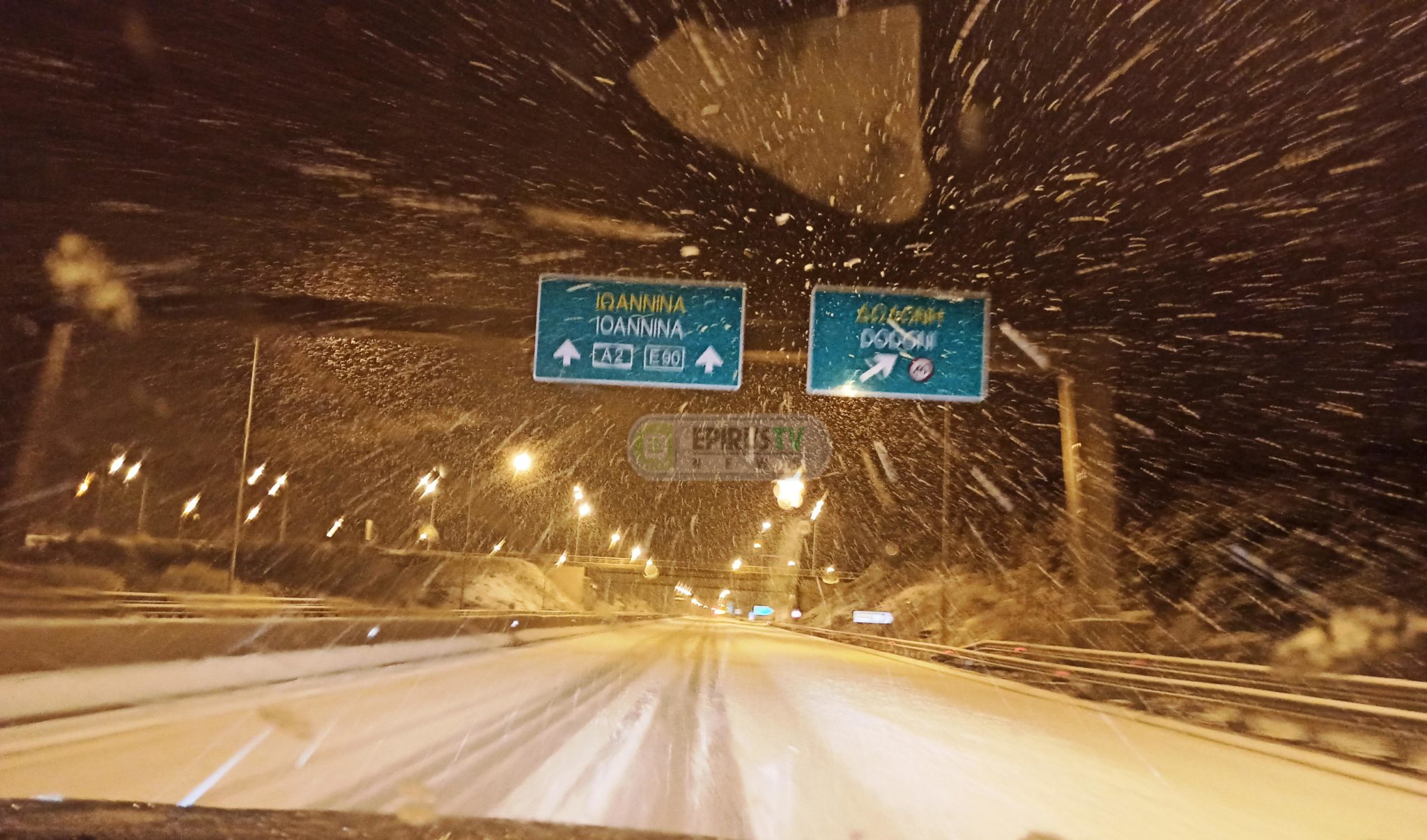 Κατά τόπους έπεφτε χιονόνερο ενώ σφοδρή χιονόπτωση εκδηλώθηκε το βράδυ της Τετάρτης στην Εγνατία Οδό, στο ύψος του κόμβου Δωδώνης. Το χιόνι που έπεφτε ήταν τόσο πυκνό που μέσα σε λίγα λεπτά παρατηρήθηκε χιονόστρωση.