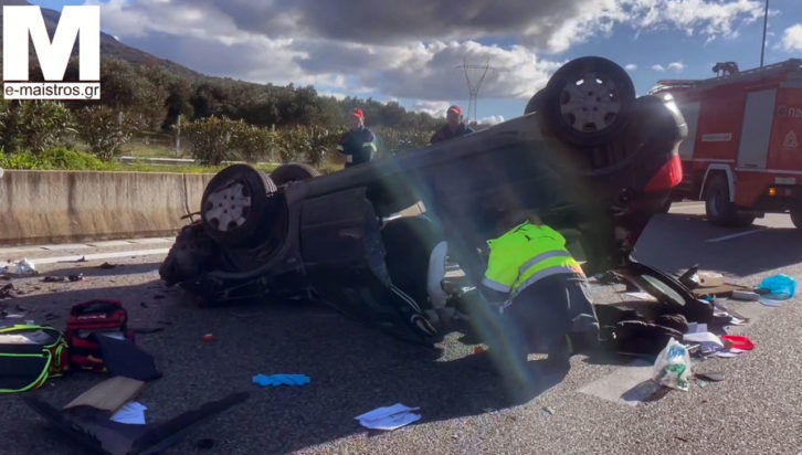 Σύμφωνα με το e-maistros.gr, οδηγός αυτοκινήτου έχασε για άγνωστη αιτία τον έλεγχό του, με αποτέλεσμα να προσκρούσει στο διαχωριστικό και να ανατραπεί.