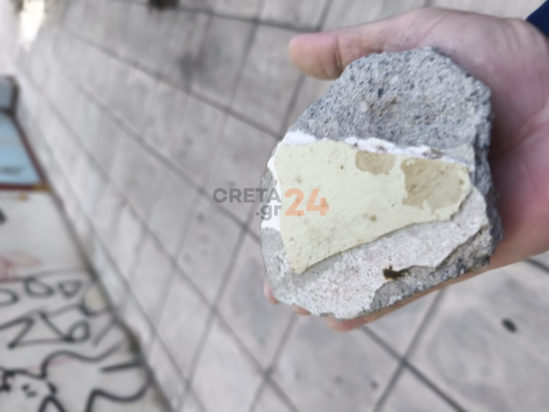 Πριν από λίγες ημέρες ένα ακόμη κομμάτι έπεσε στο πεζοδρόμιο. Μια «ανάσα» από το σημείο βρισκόταν εργαζόμενη του Εργατικού Κέντρου Ηρακλείου, ενώ δευτερόλεπτα μετά, πέρασε από εκεί μια μητέρα με τα δύο της παιδιά, σύμφωνα με την ιστοσελίδα creta24.gr.