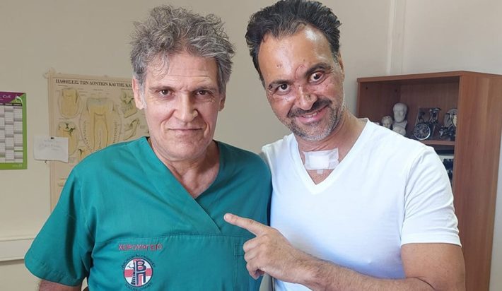 Μάλιστα, ο γναθοχειρουργός Γιώργος Μαστοράκης, που ήταν ένας από τους θεράποντες γιατρούς του 49χρονου, προχώρησε σε μία ανάρτηση φωτογραφίας με τον Ελληνοκαναδό, η οποία συνοδεύεται από το παρακάτω κείμενο: «Δύο εβδομάδες μετά τον βαρύτατο τραυματισμό του και την πολύωρη ανασύνθεση του παζλ του προσώπου του, φεύγει για το Μόντρεαλ. Το Βενιζέλειο Νοσοκομείο ήταν και θα είναι ταπεινό golden standard για την Νότια Ελλάδα».