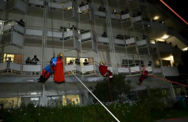 Στο ΠΑΓΝΗ, άνδρες των υπηρεσιών κατέβηκαν εντυπωσιακά από το 3ο κτήριο του νοσοκομείου, μεταμορφωμένοι σε «ιπτάμενους» Άγιους Βασίληδες, χαρίζοντας μοναδικές στιγμές ενθουσιασμού στα παιδιά της Κλινικής Αιματολογίας – Ογκολογίας Παιδιών και Εφήβων, στις οικογένειές τους, αλλά και στο προσωπικό του νοσοκομείου, σύμφωνα με το neakriti.gr.