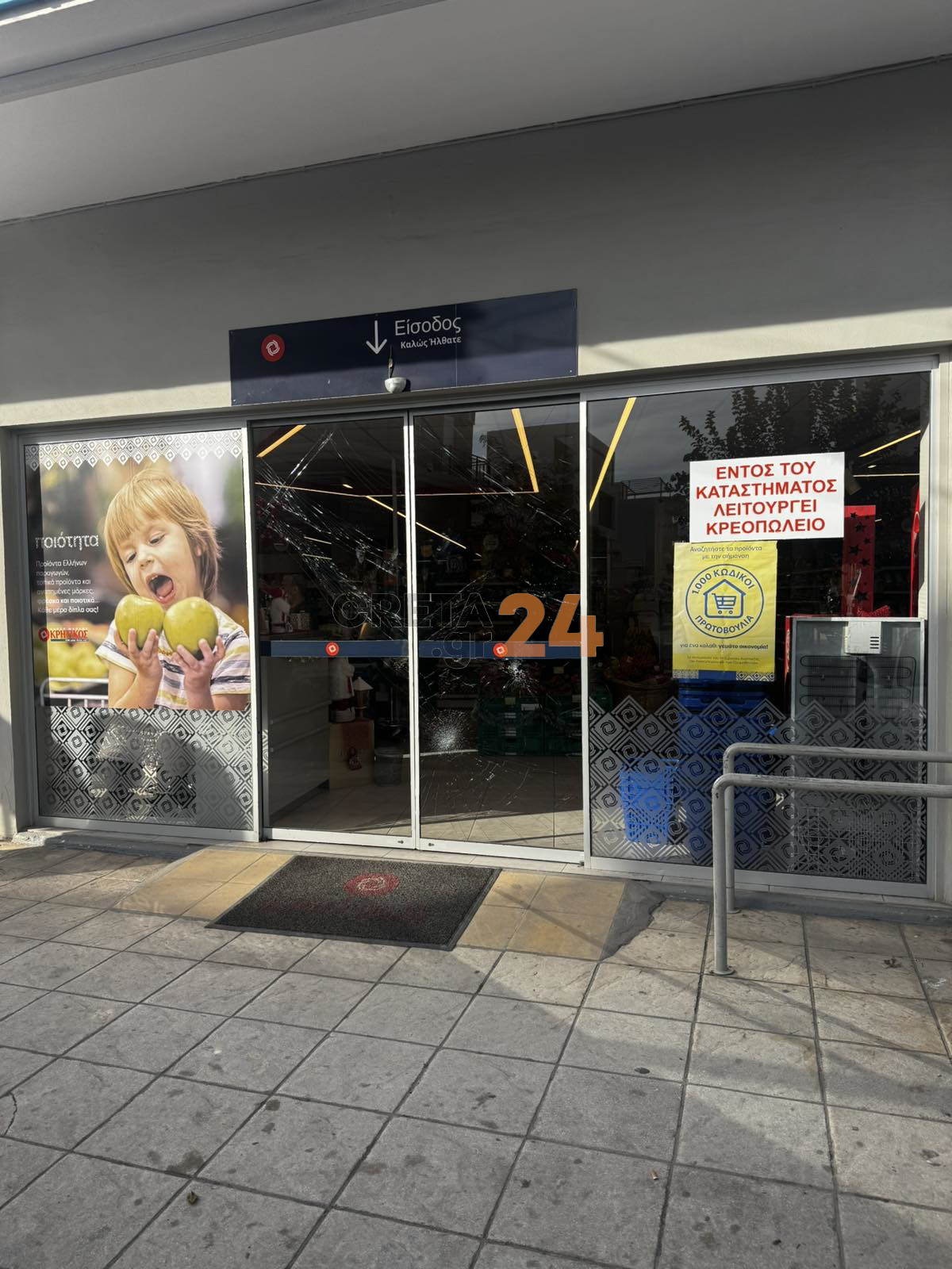 Σύμφωνα με τις ίδιες μαρτυρίες, ο υπεύθυνος του σούπερ μάρκετ κλείδωσε την πόρτα, ώστε ο άνδρας να μην μπορέσει να ξαναμπεί, όμως εκείνος έσπασε την τζαμαρία, κλωτσώντας και χτυπώντας την με τα χέρια του.