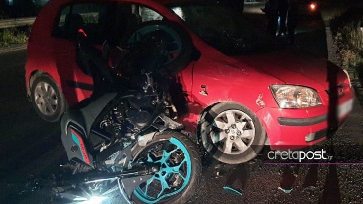 Σύμφωνα με την ιστοσελίδα cretapost.gr, μηχανή συγκρούστηκε με αυτοκίνητο με αποτέλεσμα ο δικυκλιστής να εκσφενδονιστεί, σύμφωνα με τους οδηγούς.