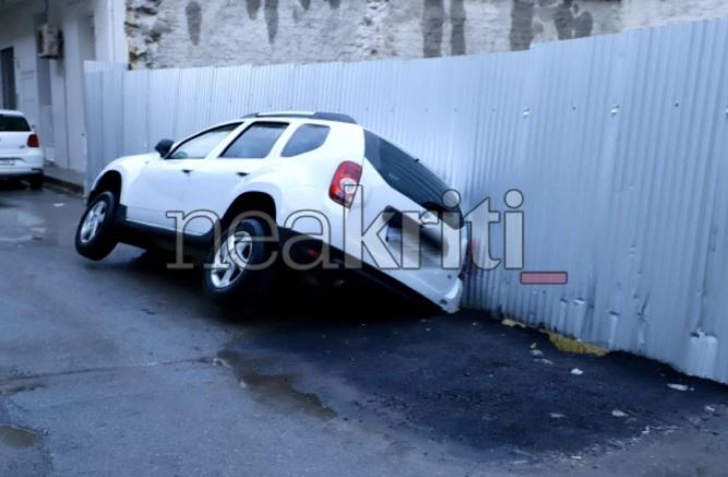 Το οδόστρωμα δεν άντεξε την ποσότητα νερού που πέφτει αδιάκοπα από χθες το βράδυ, με αποτέλεσμα ένα σταθμευμένο αυτοκίνητο να πέσει σε βαθύ “κρατήρα” που δημιουργήθηκε μέσα σε λίγα λεπτά, σύμφωνα με το neakriti.gr.