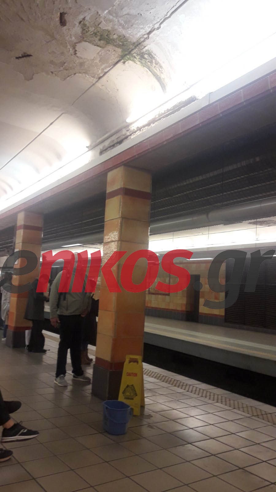 Με κουβάδες προσπαθούν να μαζέψουν το νερό στον σταθμό του ΗΣΑΠ στην Ομόνοια.