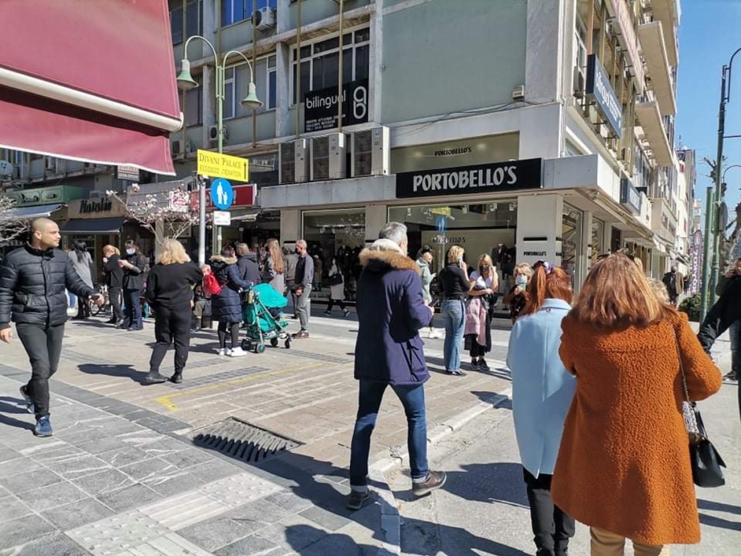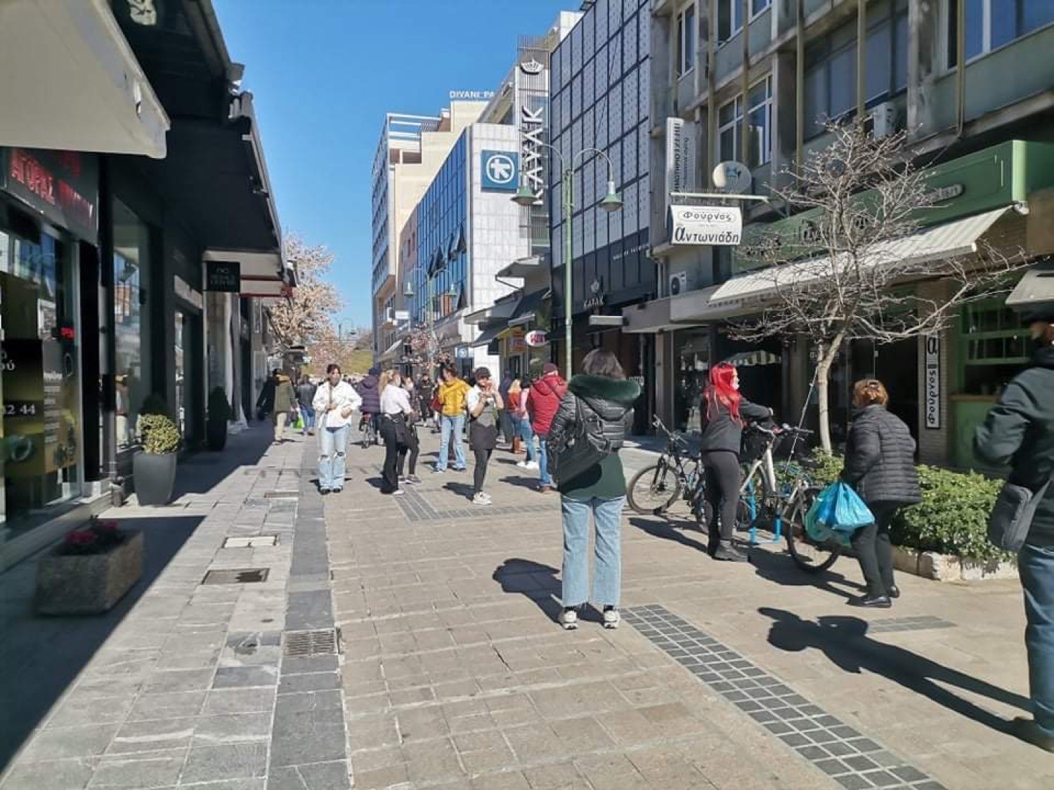 Οι δρόμοι του κέντρου γέμισαν κόσμο, όπως φαίνεται σε φωτογραφίες από το onlarissa.gr και larissanet.gr.