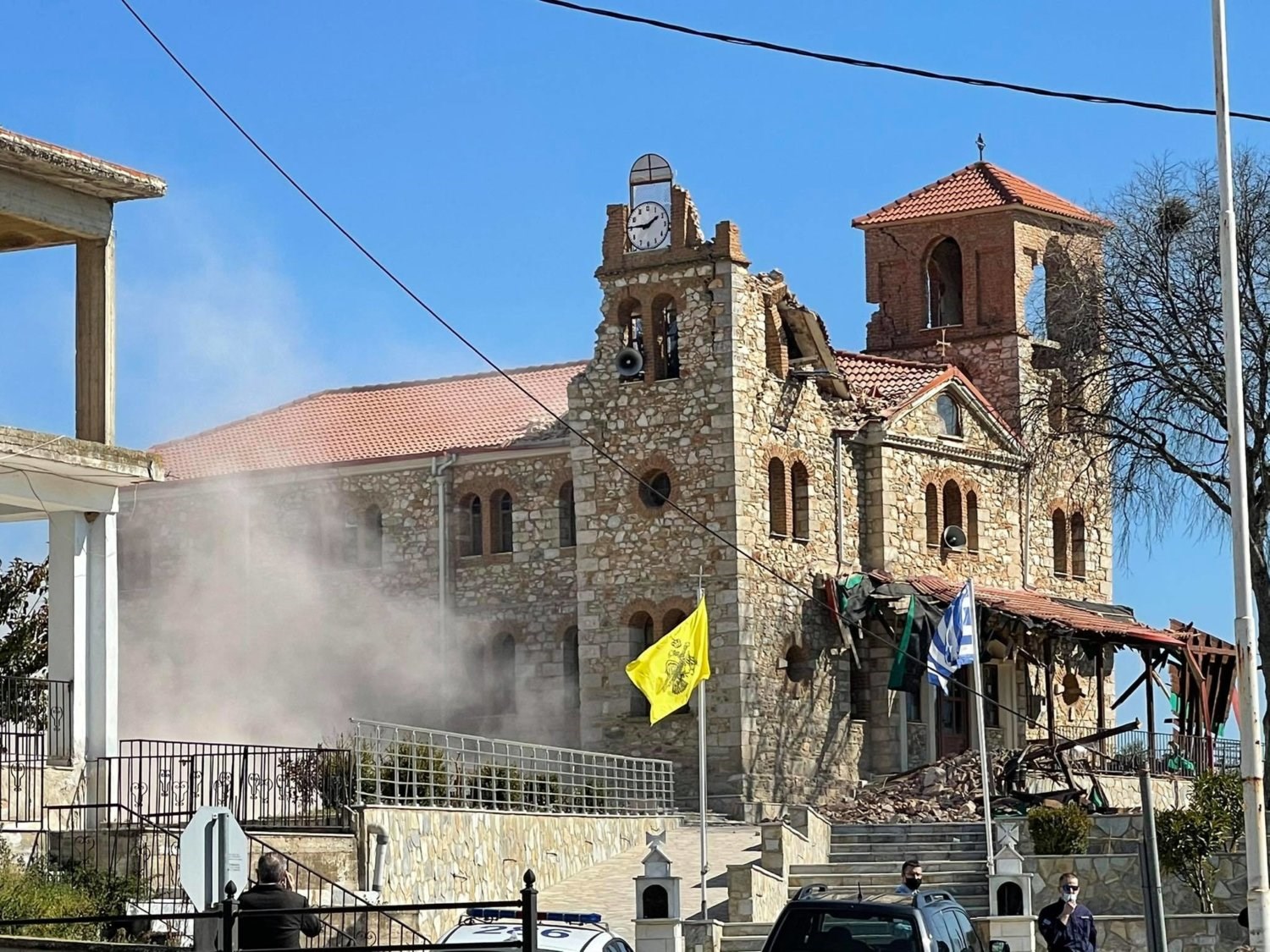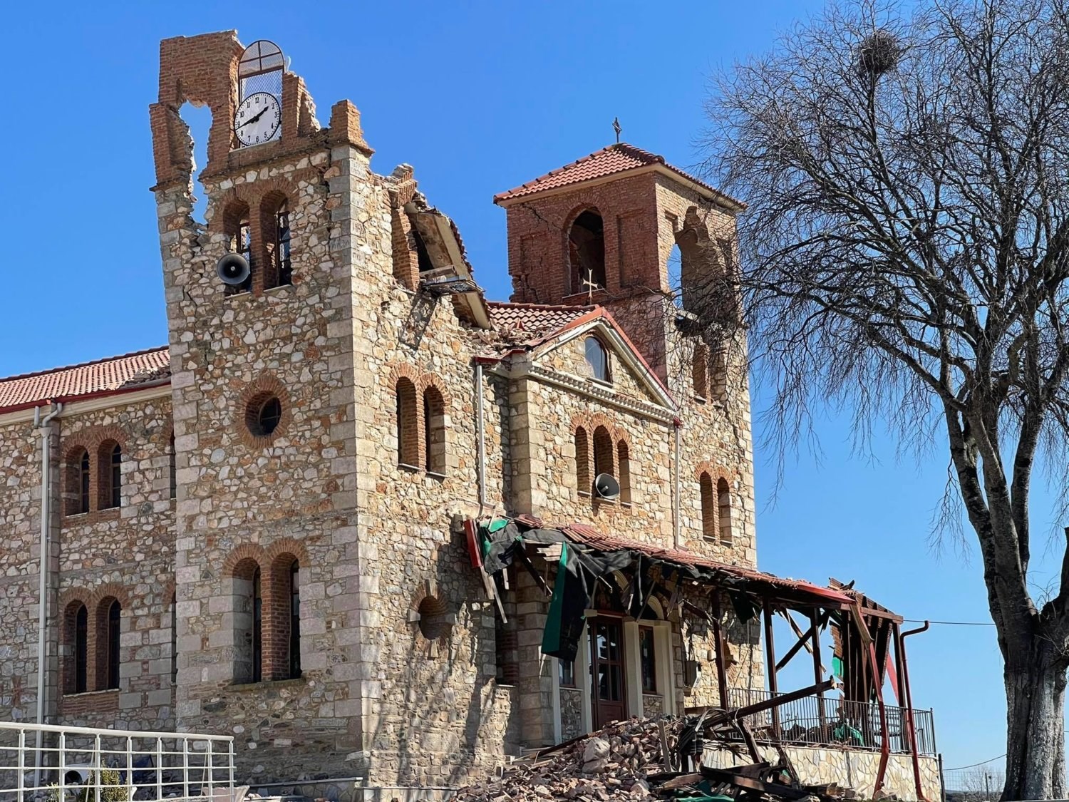 Επίσης, όπως φαίνεται και στις εικόνες που δημοσιεύει το larissanet, ακόμη μία εκκλησία υπέστη φθορές εξαιτίας του Εγκέλαδου. Πρόκειται για τον Ιερό Ναό του Αγίου Δημητρίου, που υπέστη ζημιές στο καμπαναριό και την είσοδο.