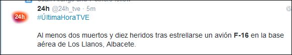 Όπως μεταδίδουν αρκετά ισπανικά ΜΜΕ υπάρχουν δύο νεκροί και 10 τραυματίες από την πτώση του ελληνικού F-16 στην αεροπορική βάση της πόλης Αλμπαθέτε στην Ισπανία.