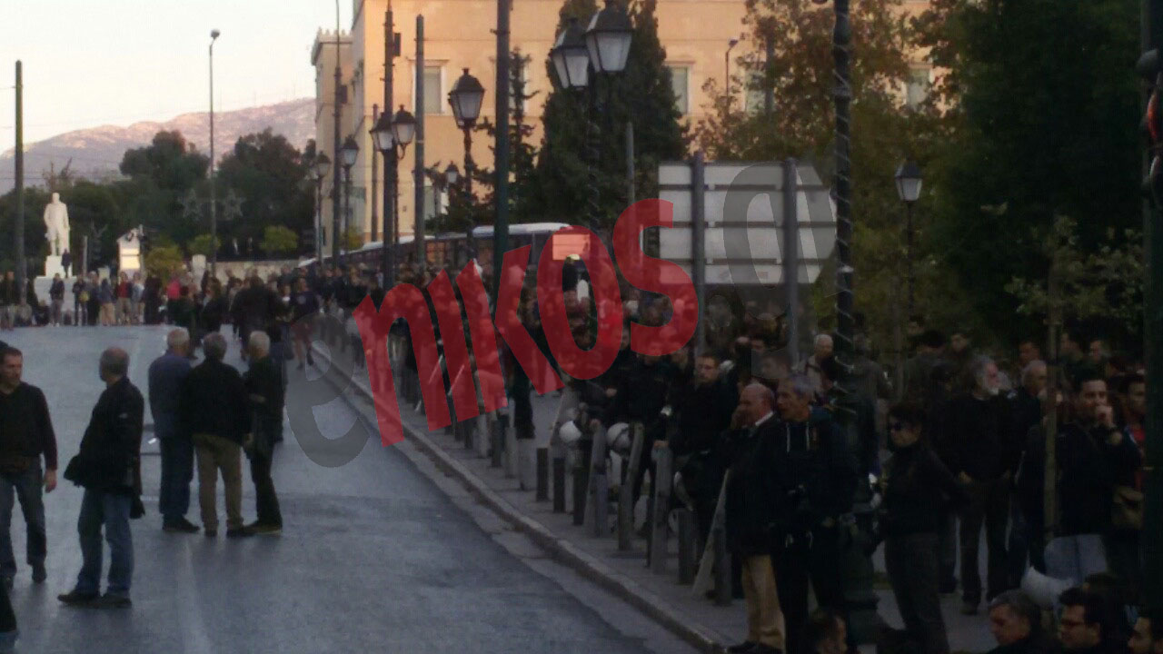 Πολύ ισχυρή είναι η παρουσία των αστυνομικών δυνάμεων στο κέντρο της Αθήνας, ιδιαίτερα στους δρόμους γύρω από την πλατεία Συντάγματος από όπου περνάει η πορεία για την επέτειο του Πολυτεχνείου.