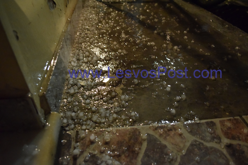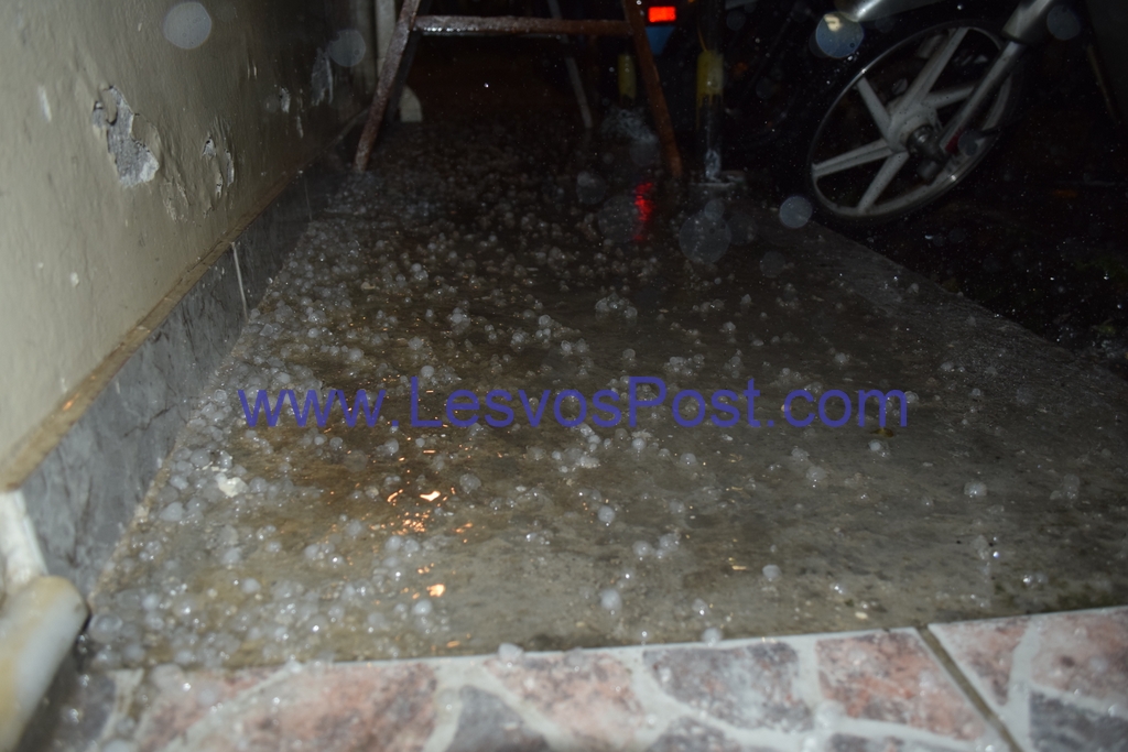 Η χαλαζόπτωση προκάλεσε προβλήματα στην κυκλοφορία, ενώ σε μεγάλο μέρος της Λέσβου υπάρχει διακοπή ρεύματος.